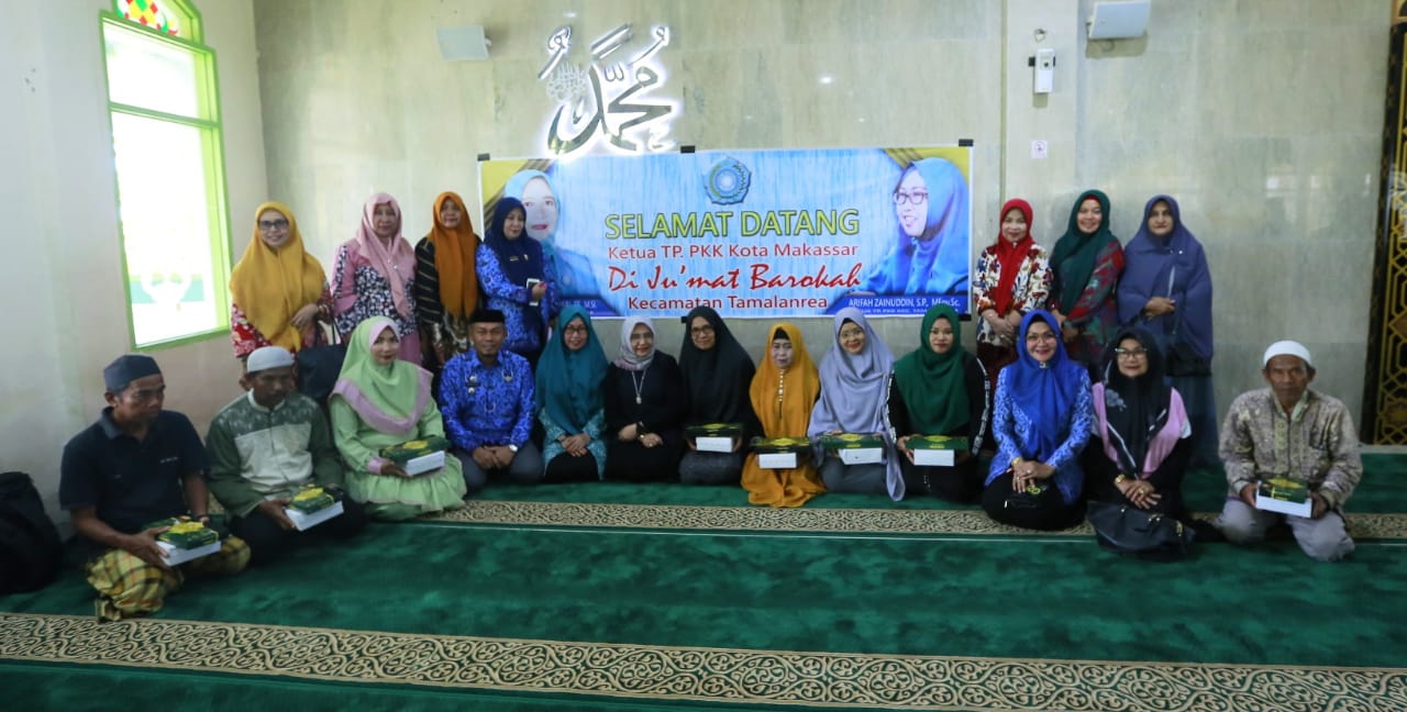 Dailymakassar.id – Makassar – Ketua TP PKK Kota Makassar Murni Djamaluddin Iqbal beserta jajaran pengurus dan TP PKK Kecamatan Tamalanrea menggelar Jumat Barokah di Masjid Muamalah BTP, Jumat (17/01/2020).