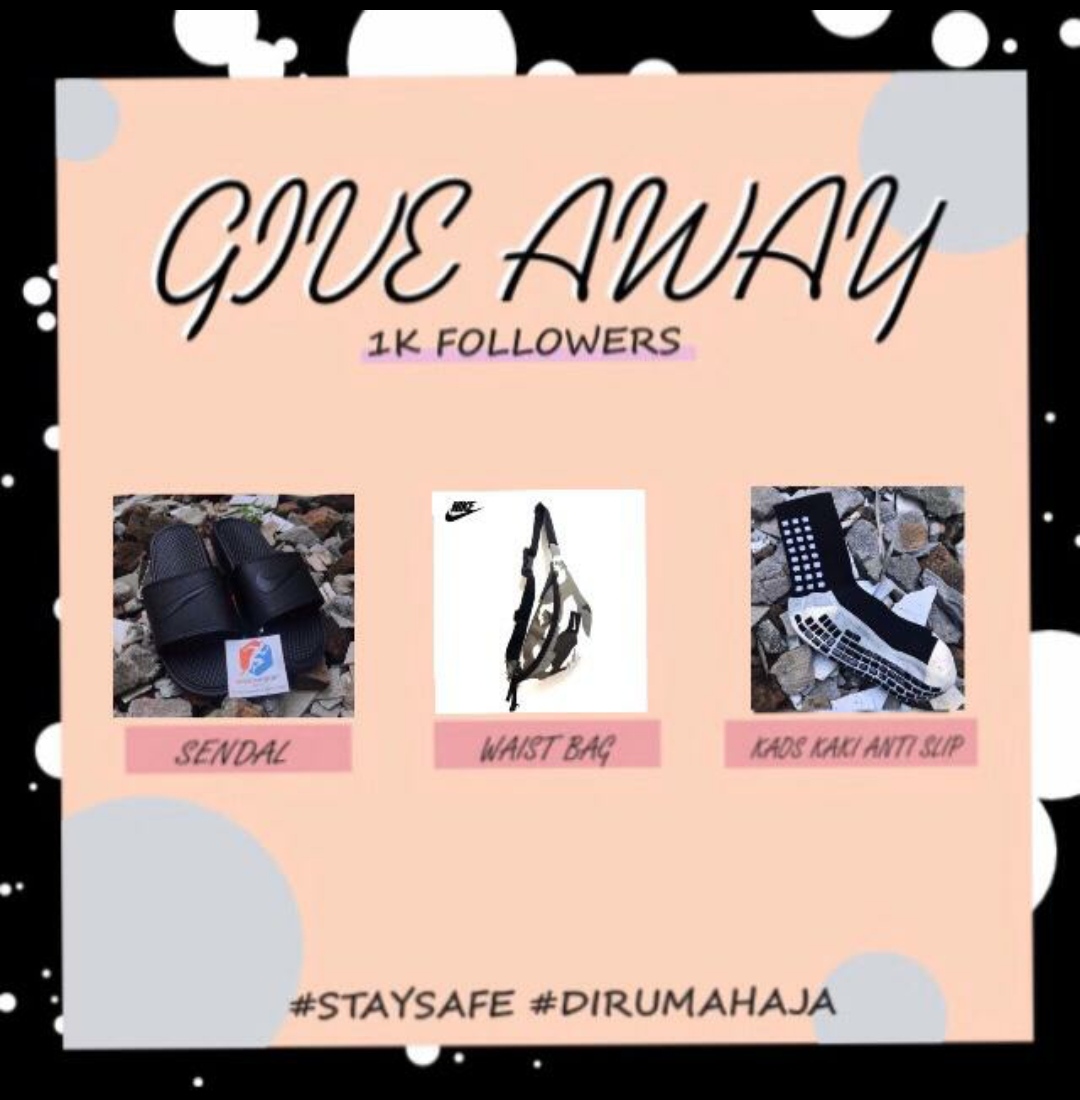5. Adapun hadiah untuk 3 pemenang sebagai berikut, Pemenang 1: Sendal Nike (size dan stok menyesuaikan ). Pemenang 2: Waistbag. Pemenang 3: kos kaki antislip pendek