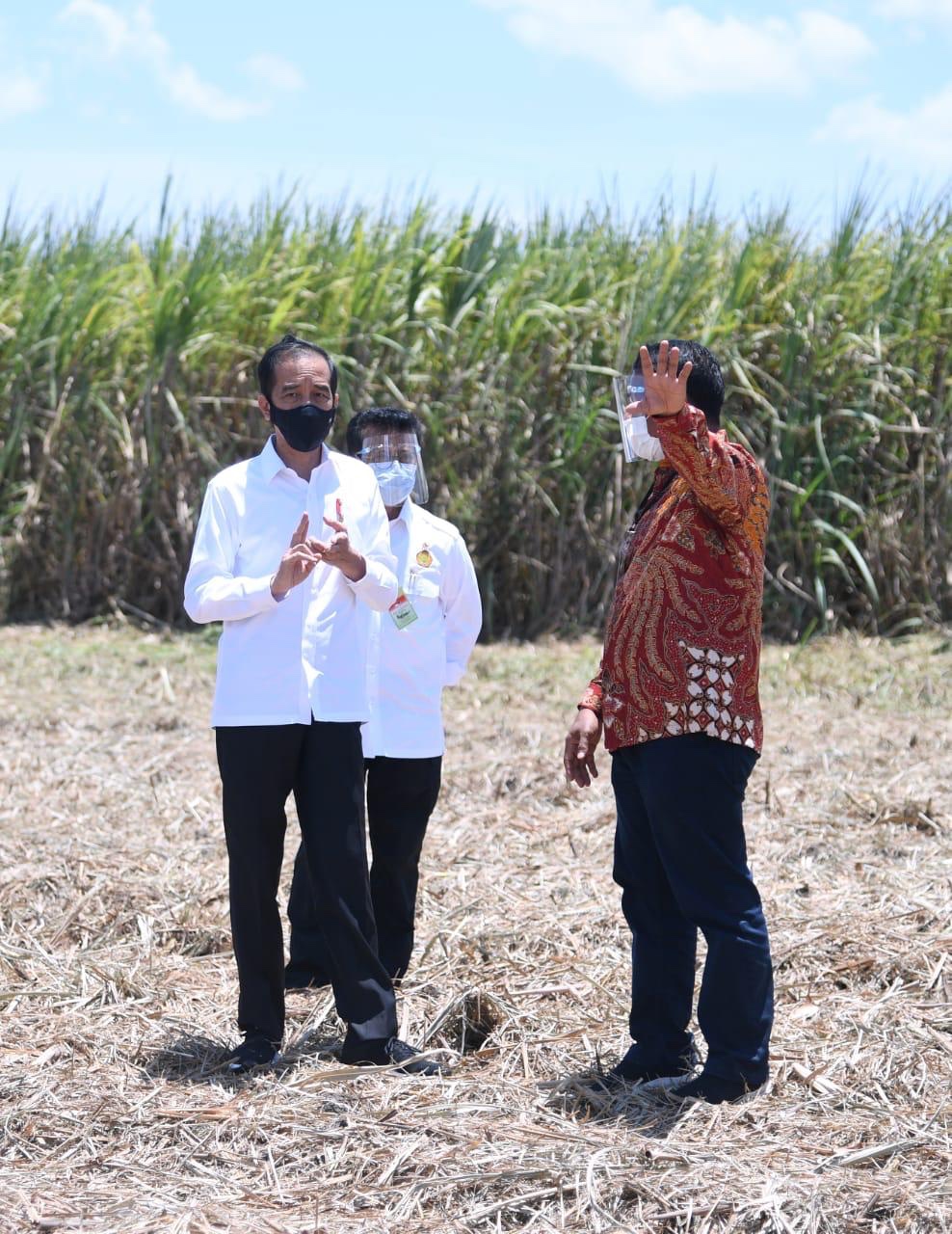 Presiden Jokowi meninjau lokasi panen tebu sekaligus meresmikan pabrik gula di kabupaten tersebut yang merupakan salah satu pabrik gula dengan jumlah produksi terbesar di Indonesia. Presiden disambut Dr Andi Amran Sulaiman, mantan menteri pertanian di era pertama pemerintahan Jokowi.