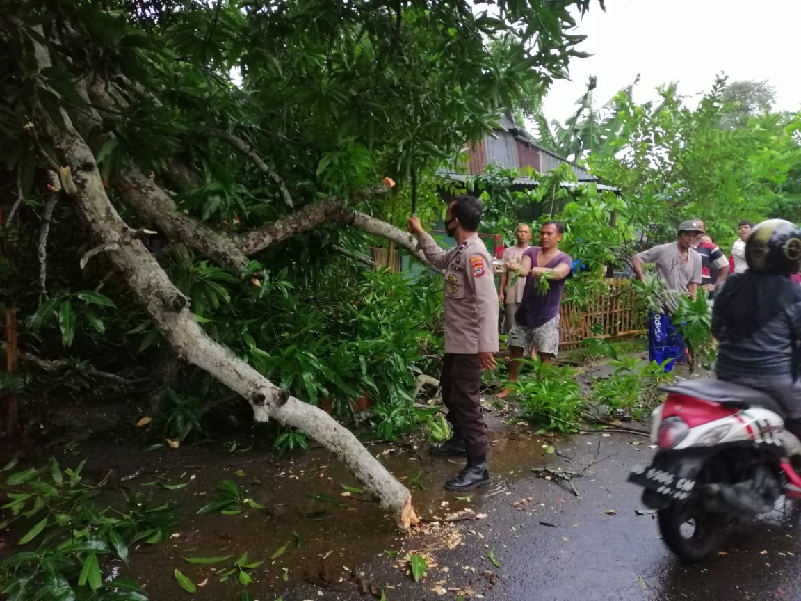 “Kami mengimbau kepada masyarakat sekarang ini musim hujan agar berhati-hati dan waspada apabila sedang berteduh di bawah pohon guna menghindari kecelakaan tertimpa pohon tumbang yang biasanya apabila hujan di barengi dengan angin kencang,” jelasnya, Sabtu, (19/12/2020).