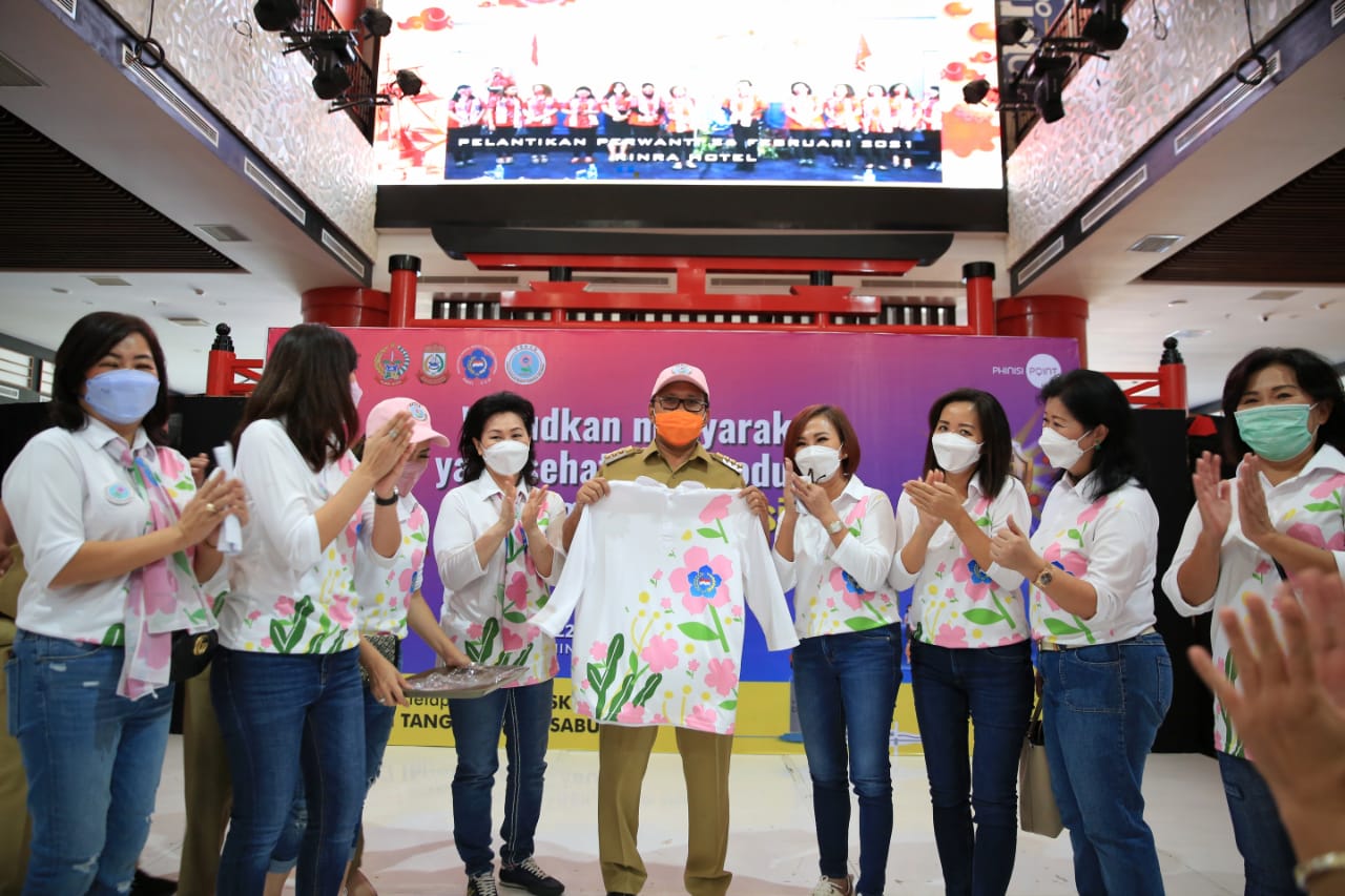 Acara yang bertajuk “wujudkan masyarakat yang sehat dan produktif dengan vaksinasi,” Ibu-ibu sosialita Tionghoa dengan seragam kompak berwarna pink menyambut para peserta dengan ramah.