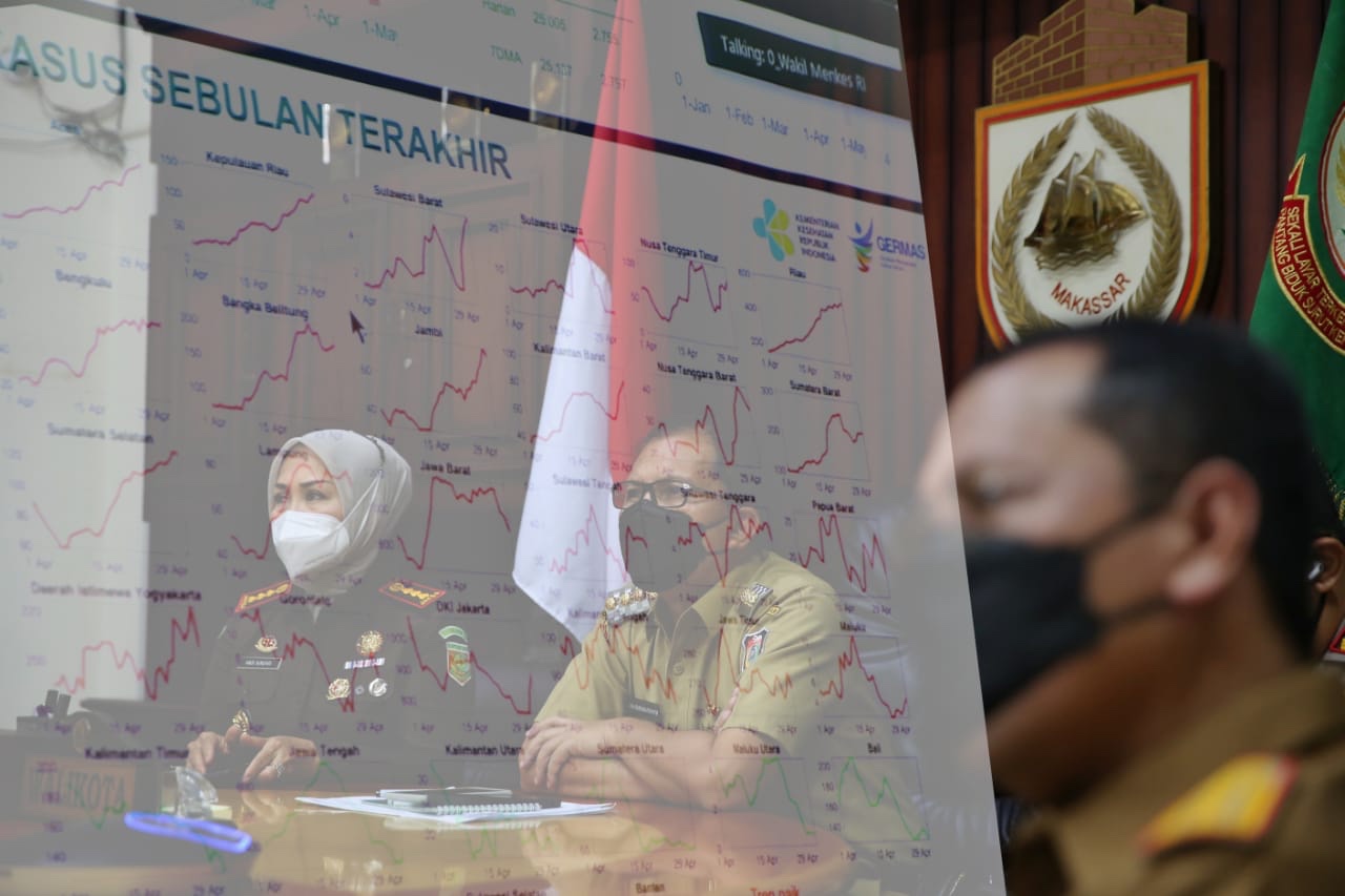 Danny Pomanto mengikuti rakor virtual ini di ruang kerja Wali Kota lantai 2 Kantor Balaikota Makassar, Senin (3/5/2021).