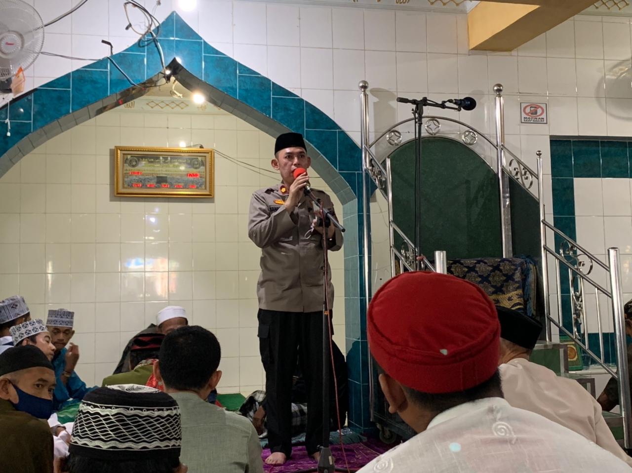 Tak lupa pula Kapolsek mengingatkan ke jama’ah tentang protokol kesehatan, “Pandemi Covid-19 ini belum selesai olehnya itu mari kita tetap disiplin dalam menerapkan protokol kesehatan 5 M agar kita selamat dari pandemi ini.”