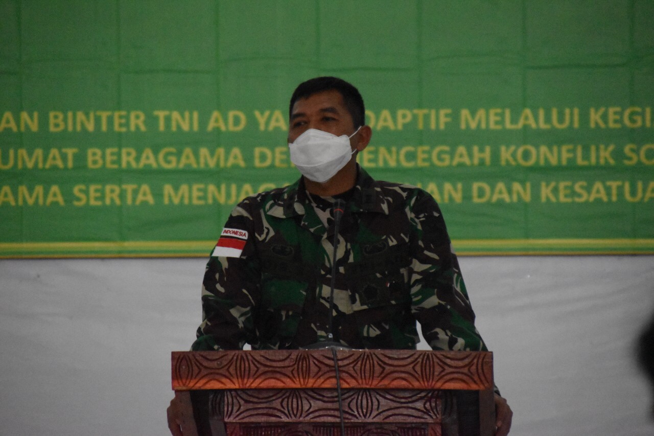 Dengan mengusung tema “Mewujudkan Binter TNI AD Yang Adaptif Melalui Kegiatan Pembinaan Kerukunan Umat Beragama Demi Mencegah Konflik Sosial Antar Umat Beragama Serta Menjaga Persatuan Dan Kesatuan Bangsa”, kegiatan pembinaan kerukunan umat beragama yang dilaksanakan di Aula Anim Ha Makodim 1707/Merauke Jln. Raya Mandala, Distrik Merauke, Kabupaten Merauke tersebut sedikitnya diikuti 26 orang tokoh agama yang ada di Kota Merauke. Selasa (22/6/2021).
