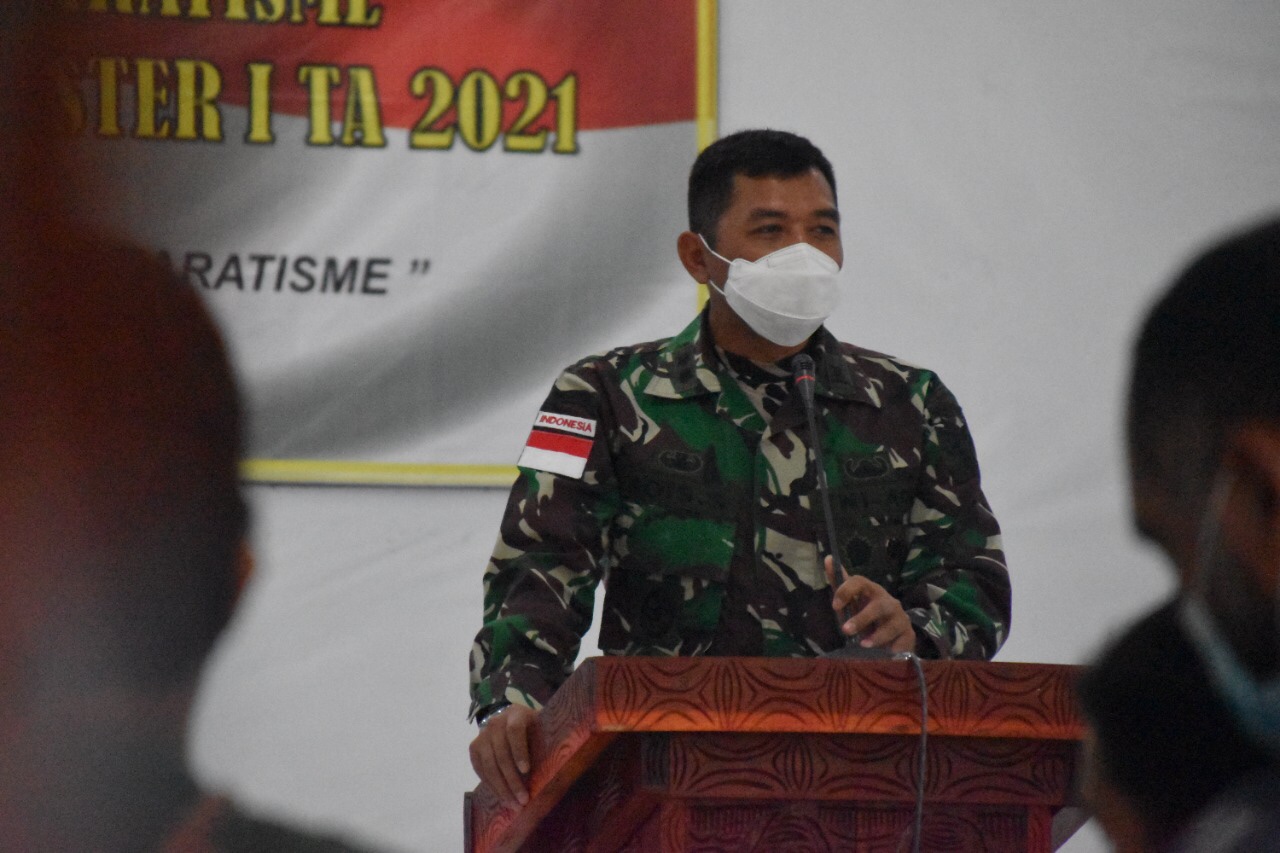 Dailymakassar.id – Merauke. Bertempat di Aula Anim Ha Makodim 1707/Merauke Jln. Raya Mandala Distrik Merauke Kabupaten Merauke, Kodim 1707/Merauke yang dipimpin langsung oleh Komandan Kodim 1707/Merauke Letnan Kolonel Czi Muh Rois Edy Susilo, S.T. menggelar kegiatan pembinaan komunikasi sosial cegah tangkal radikalisme/separatisme di wilayah Kodim 1707/Merauke Semester I TA. 2021. Selasa (22/6/21).