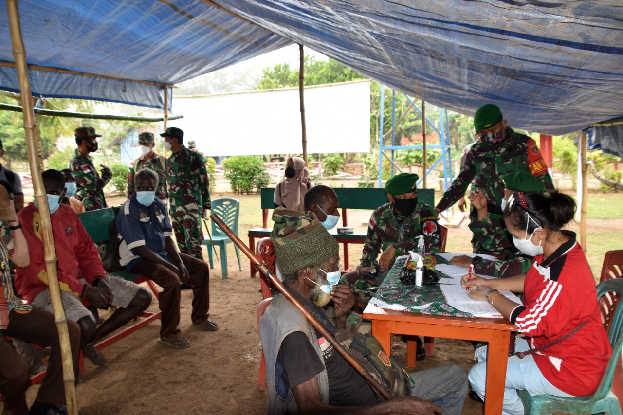 Dailymakassar.id – Merauke. Kodim 1707/Merauke yang dipimpin langsung oleh Komandan Kodim 1707/Merauke Letnan Kolonel Czi Muh Rois Edy Susilo, S.T. melaksanakan bakti sosial berupa pembagian paket sembako dan pengobatan masal serta penyuntikan vaksin kepada masyarakat Kampung Yakyu, Distrik Sota, Kabupaten Merauke yang merupakan perbatasan Negara RI-PNG dengan melibatkan petugas kesehatan Puskesmas Sota dan Satgas Pamtas RI-PNG Yonif 611/Awanglong Kampung Yakyu, Kamis (1/7)