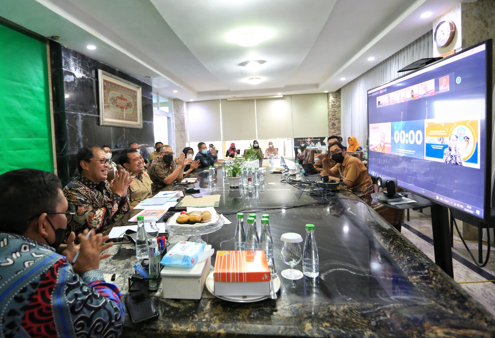 Wali Kota Makassar, Danny Pomanto, saat mengikuti pembekalan kepemimpinan pemerintahan dalam negeri bagi bupati/wakil bupati dan wali kota/wakil wali kota hasil Pilkada serentak tahun 2020 secara virtual yang dilaksanakan BPSDM Kementerian RI, Kamis (15/7/2021) (foto: ist.)