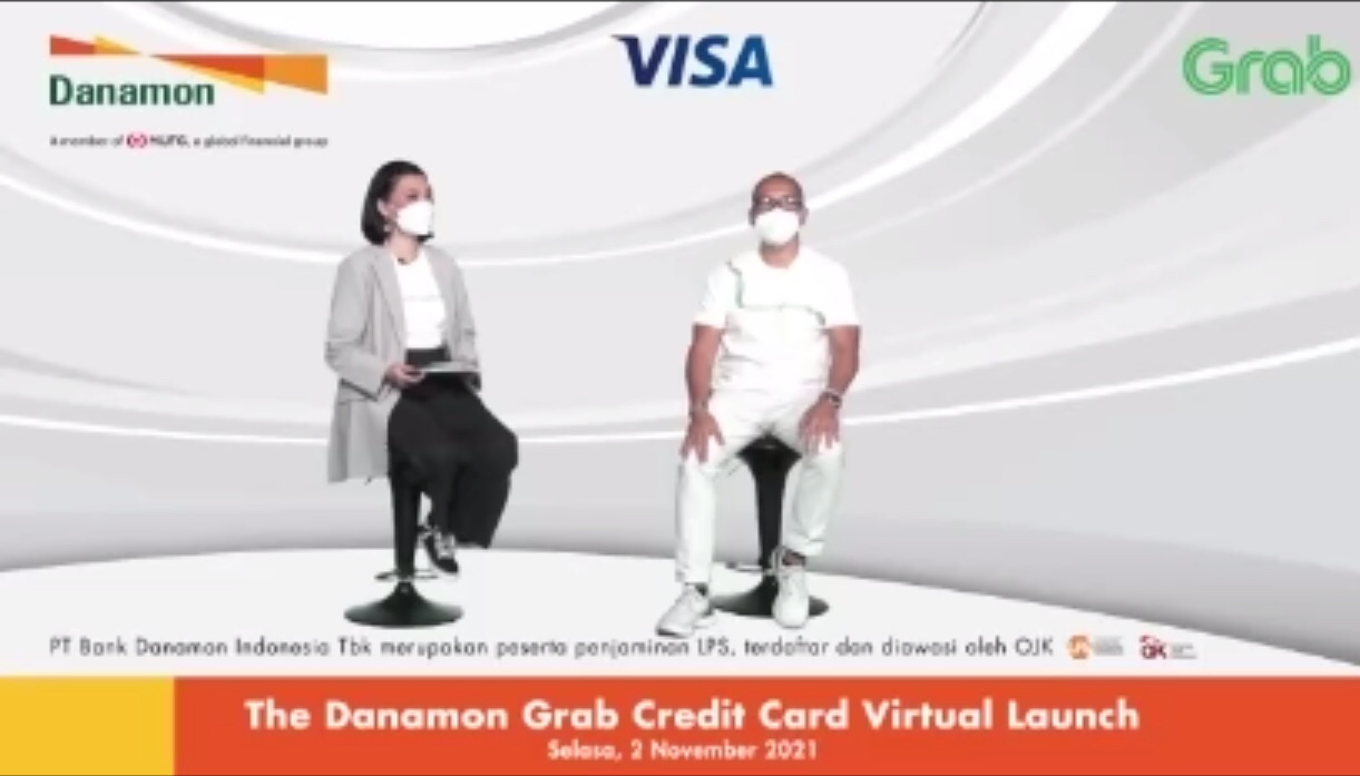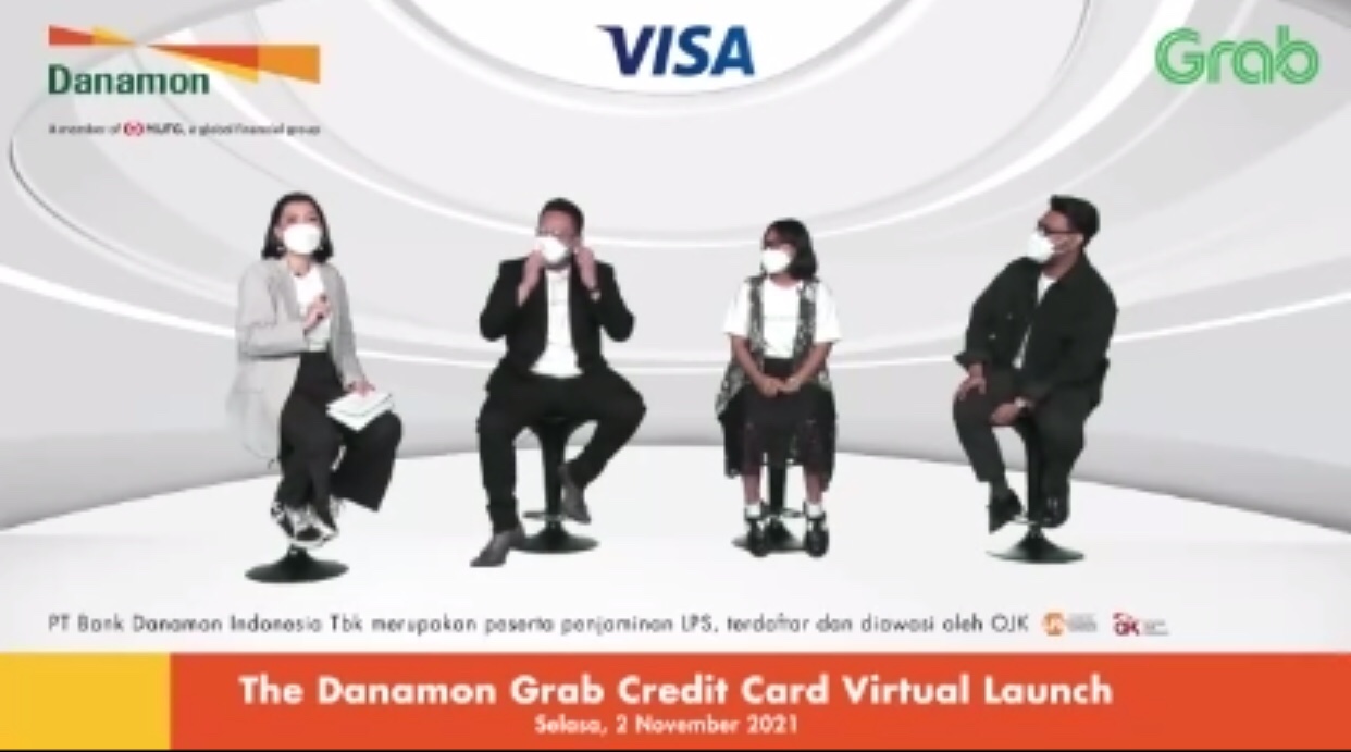 JAKARTA, 2 November 2021 – Hari ini, Danamon berkolaborasi dengan Grab resmi meluncurkan Kartu Kredit Danamon – Grab yang inovatif untuk mendukung gaya hidup generasi muda agar dapat menjadi smart spender dan mengakomodasi kebutuhan mereka dengan optimal. Danamon dan Grab berharap bahwa kartu kredit ini dapat menjadi solusi keseharian generasi muda yang ingin menikmati hidup yang #Bisalah #JadiDiriGue, namun tetap memegang kendali ataspengeluaran mereka. Hadir pada acara konferensi pers virtual hari ini adalah Yasushi Itagaki, selaku President Director PT Bank Danamon Indonesia Tbk, Neneng Goenadi, selaku Country Managing Director Grab Indonesia, Riko Abdurrahman, selaku President Director PT Visa Worldwide Indonesia, Kertapradana, selaku Director of Partnership and Business Development Grab Indonesia, Naoki Mizoguchi, selaku, Global Alliance Strategy Director PT Bank Danamon Indonesia Tbk, Lanny Hendra, selaku Consumer Business Head PT Bank Danamon Indonesia, Tresia Sarumpaet, selaku Unsecured Business Head PT. Bank Danamon Indonesia Tbk, Taufan Teguh Akbar selaku CEO Rumah Millennials, Lukman Benjamin Mulia selaku CEO Creativox Media, dan Komika Indonesia, Aci Resti.
