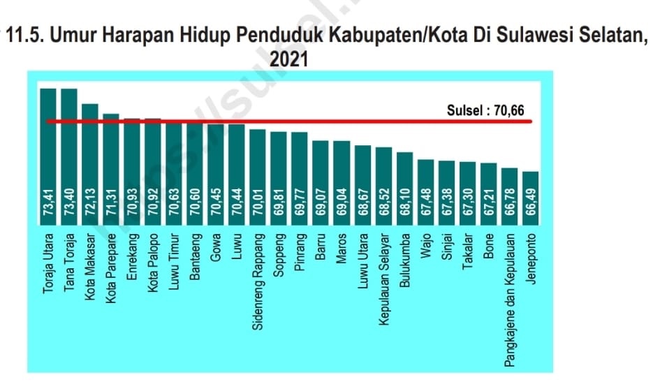 Lebih lanjut umur harapan hidup Lutra berada peringkat ke 16 di Sulsel atau 68,67.