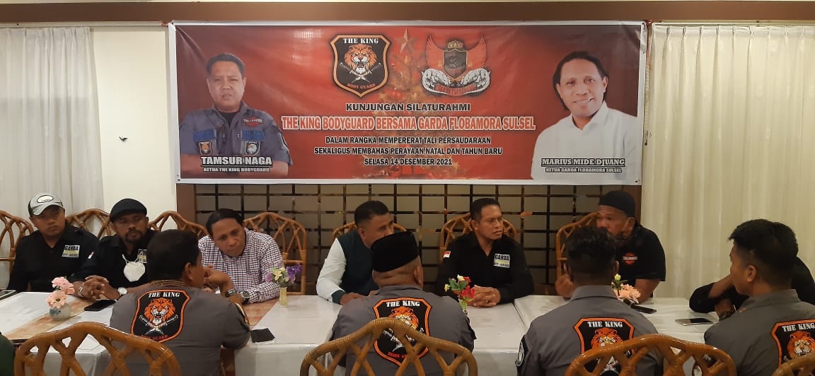 Dailymakassar.id – MAKASSAR. The King Bodyguard melakukan kunjugan silaturahmi ke Garda Flobamora Sulsel, Selasa (14/12) di Hotel Gran Wisata Makassar. Selain mempererat tali persaudaraan, kunjungan ini juga membahas penyambutan perayaan Natal mendatang. Kunjungan ini diterima langsung oleh Ketua Garda Flobamora Mide Djuang.