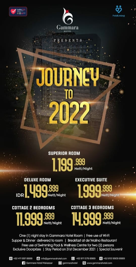 Dailymakassar.id – MAKASSAR. Memiliki tiga tipe kamar dan dua tipe cottage membuat Hotel Gammar Makassar memiliki paket menginap pada malam pergantian tahun dengan harga yang bervariasi.