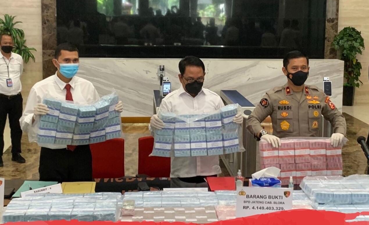 Total kerugian negara akibat tindak pidana pengajuan kredit cabang Blora sekitar Rp 115 miliar sedangkan uang yang sudah disita sebesar Rp 4 miliar beserta aset-aset lainnya.