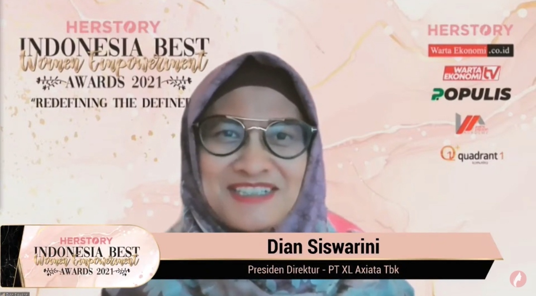 Keenam penghargaan yang dimaksud adalah “Best Women Empowerment Initiative with Oustanding Female Leadership” untuk Presiden Direktur & CEO XL Axiata, Dian Siswarini, dari ajang Indonesia Best Women Empowerment Awards 2021 ‘Redefining the Defined’, yang diselenggarakan oleh HerStory Indonesia dan Warta Ekonomi sebagai apresiasi untuk perusahaan-perusahaan yang telah mendukung kesetaraan gender dan pemberdayaan perempuan.