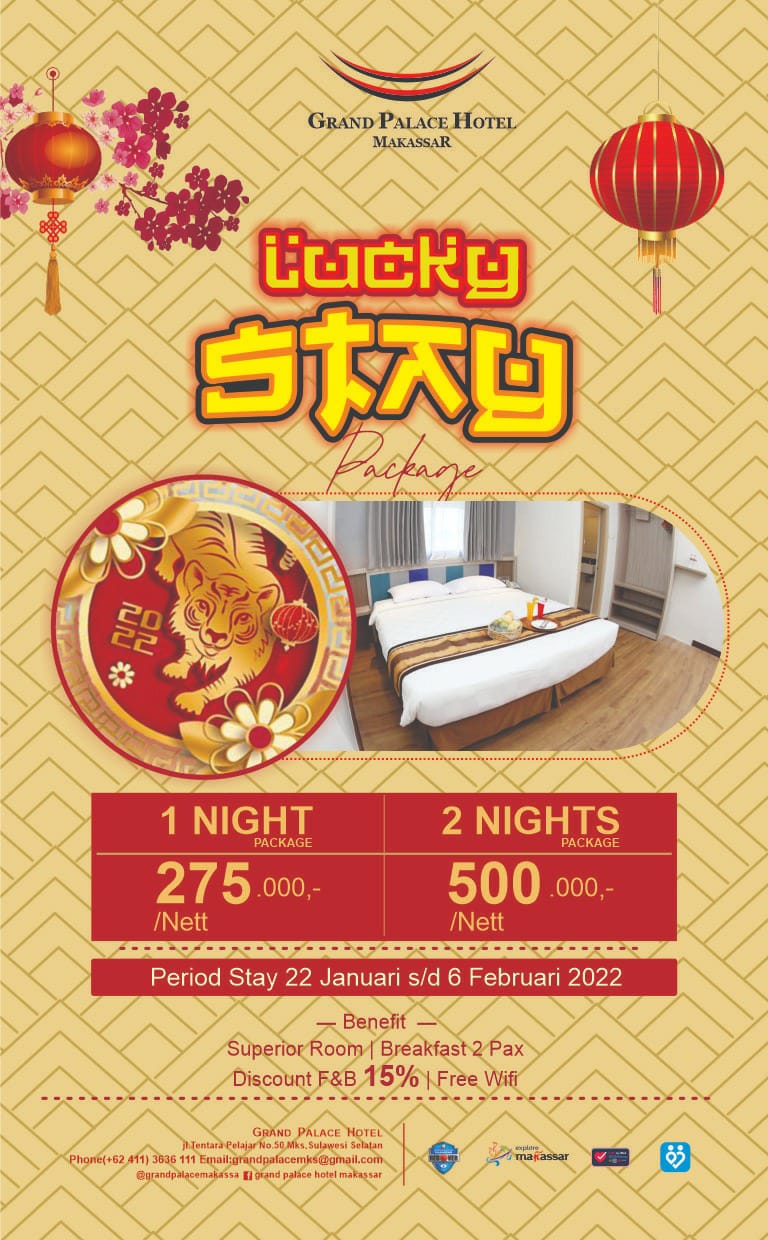 Dailymakassar.id – MAKASSAR. Menyambut Tahun Baru Imlek, Grand Palace Hotel Makassar menghadirkan promo menginap bertema “Lucky Stay”.