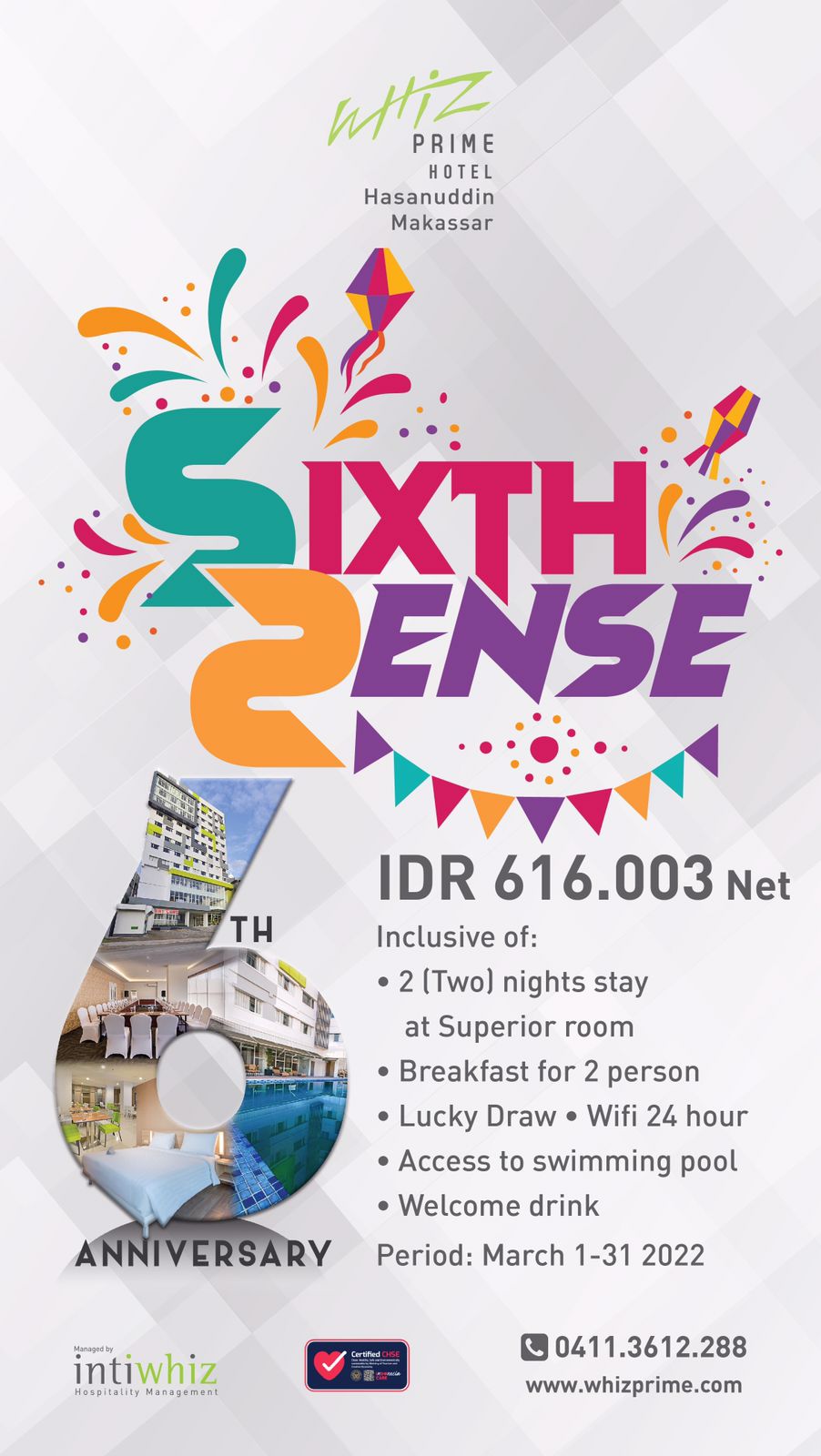 Dailymakassar.id – MAKASSAR. Menyambut ulang tahun Whiz Prime Hasanuddin Makassar (WPHM) yang ke-6 tanggal 16 Maret Mendatang, pihak hotel menawarkan promo menarik dan akan menggelar berbagai kegiatan sosial.