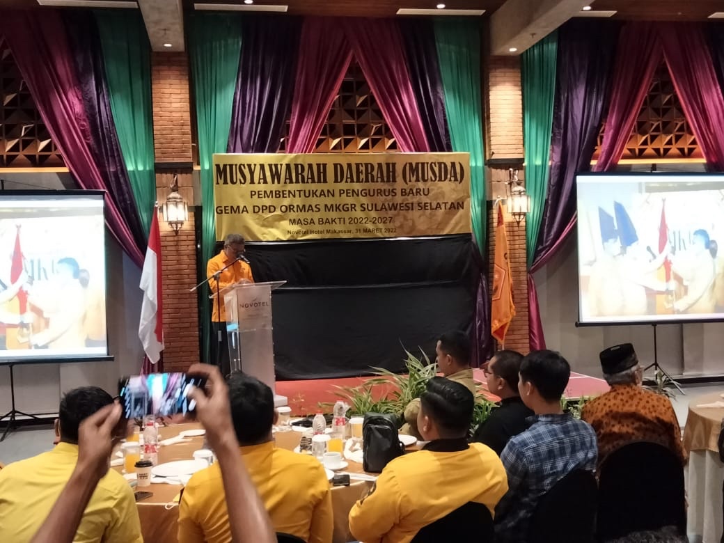 Dailymakassar.id – MAKASSAR. Pada hari Kamis tanggal 31 Maret 2022 sekitar pukul 20.25 wita bertempat di Lantai 15 Hotel Novotel Jl. Hairil Anwar No. 28 Makassar, telah berlangsung giat Musyawarah Daerah (Musda) Pembentukan Pengurus Baru Gema DPD Ormas MKGR Sulawesi Selatan Masa Bakti 2022 – 2027