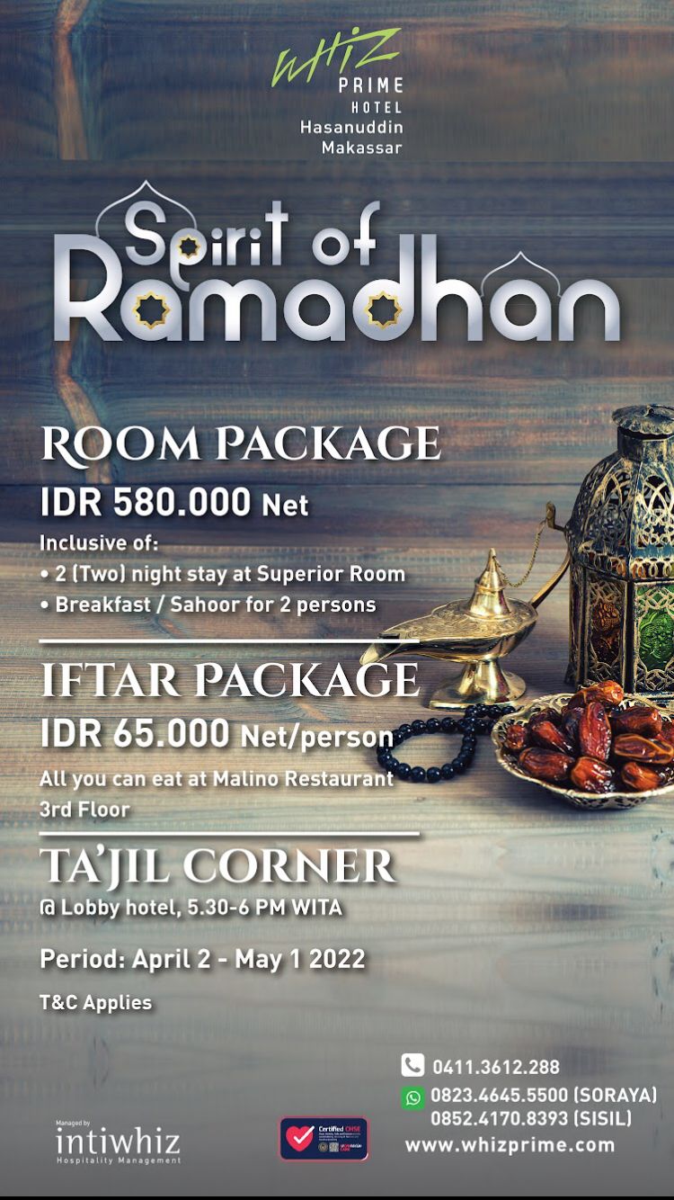 Dailymakassar.id – MAKASSAR. Membawa semangat ramadan dengan penuh sukacita Whiz Prime Hasanuddin Makassar (WPHM) menghadirkan paket menginap dan berbuka bertema “Spirit of Ramadhan”.