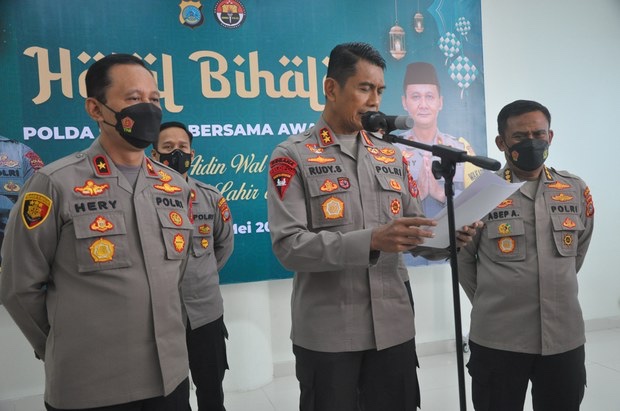 Kapolda Sulawesi Tengah, Irjen. Pol. Rudy Sufahriadi membacakan inisial puluhan warga Poso dan Tojo Unauna yang ditangkap Densus 88 Antiteror Polri saat menggelar konferensi pers di kantor Polda Sulawesi Tengah di Palu, Rabu, 18 Mei 2022. Keisyah Aprilia/BenarNews