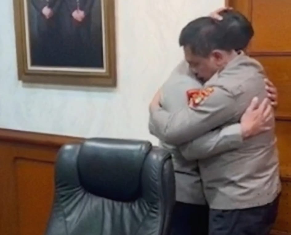 Bahkan tampak, Irjen Ferdy Sambo seperti meneteskan air mata saat dipeluk oleh Irjen Fadil Imran.
