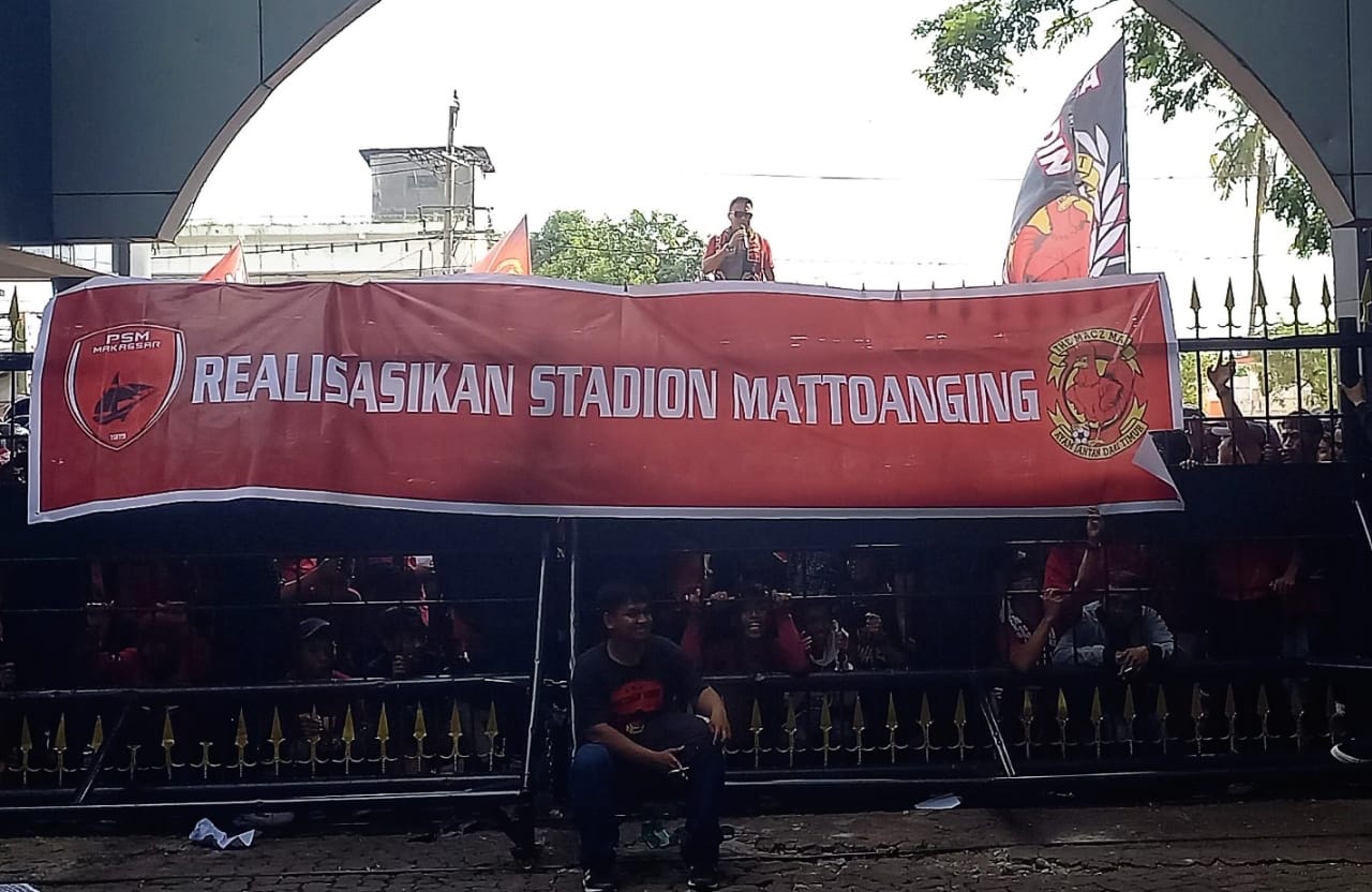 Tak bosannya, Massa The Macz Man kembali meminta Gubernur Andi Sudirman Sulaiman (ASS) untuk segera mewujudkan Stadion Mattoanging.