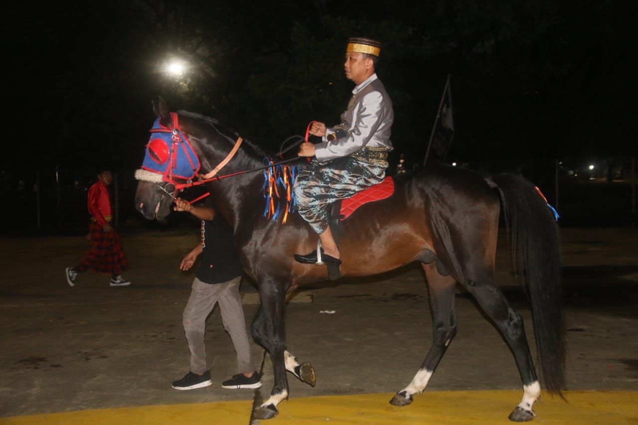 Usai melaksanakan karnaval, dibelakang panggung utama, Camat Tallo, Alamsyah Sahabuddin, S.STP, M.Si menyempatkan diri menunggangi kuda pacu mengelilingi separuh lapangan terbuka Karebosi.