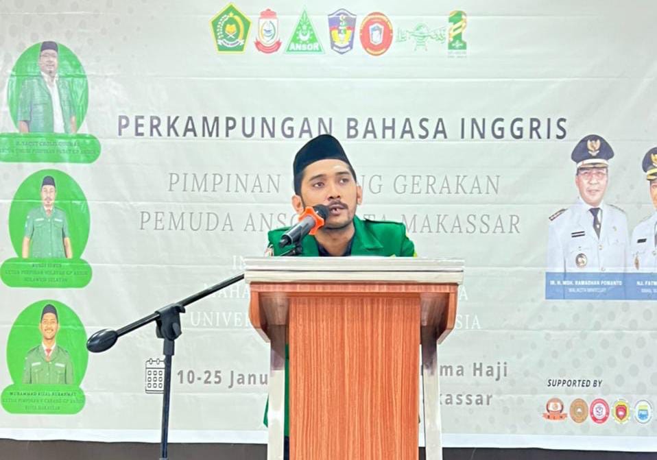 MAKASSAR – Pengurus Cabang Gerakan Pemuda Ansor Kota Makassar (PC GP Ansor Makassar) berkolaborasi Mahasiswa Fakultas Sastra Universitas Muslim Indonesia menggelar Perkampungan Bahasa Inggris bertempat di Asrama Haji Makassar.