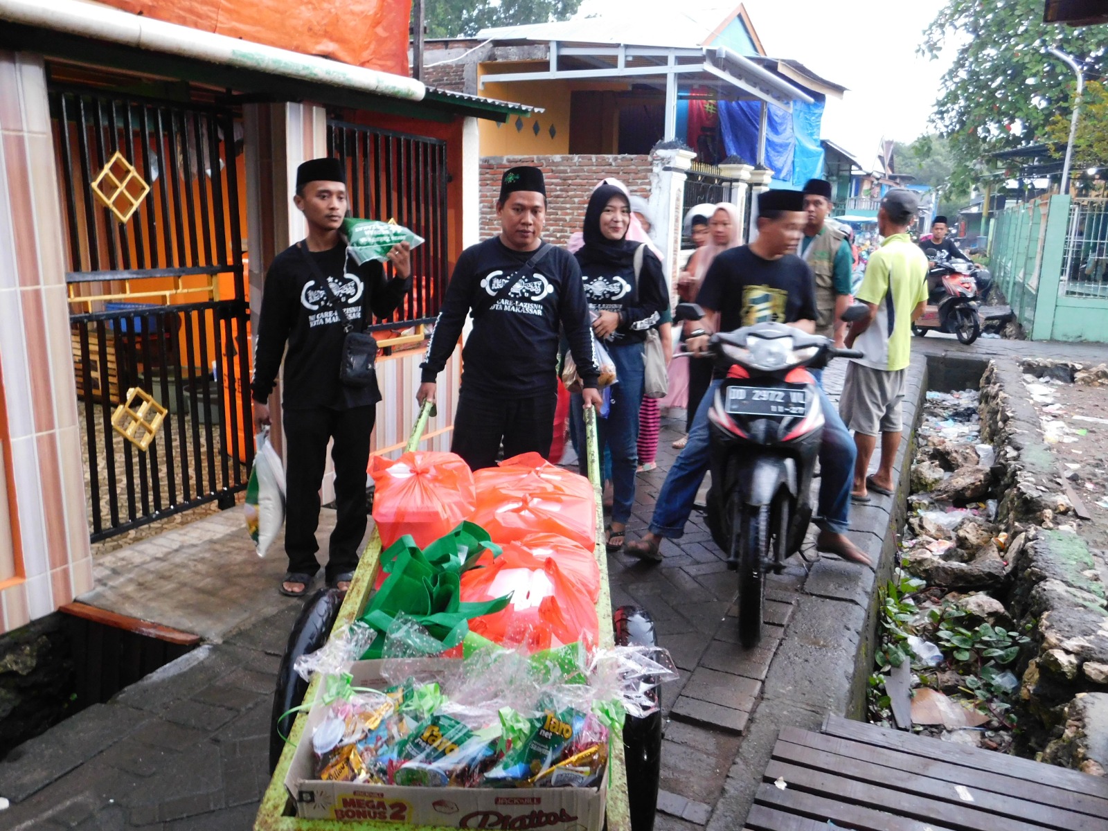Kegiatan Ramadan Menggembirakan berupa berbagi paket Ramadan di daerah padat penduduk di Kelurahan Buloa Kecamatan Tallo, Ahad (08/05/2023).