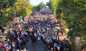 Jika dibandingkan dengan jalan sehat Anti Mager yang dihadiri Bacapres Prabowo pada Minggu 6 Agustus 2023 lalu, peserta tumpah ruah merayap sepanjang 5 kilometer tanpa terputus. Itu pun panitia dan kepolisian menyatakan jumlah peserta 500 ribu orang. (rj)