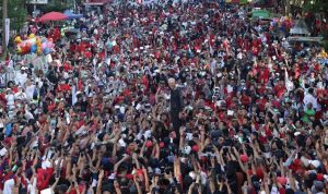 “Sepanjang mata memandang, saya sampai tidak bisa melihat ujungnya,” kata Ganjar di tengah-tengah massa.