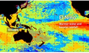 El Nino mengacu pada fenomena pemanasan di wilayah tropis Pasifik bagian timur. Fenomena sebaliknya adalah La Nina yang mengacu pada pendinginan suhu.