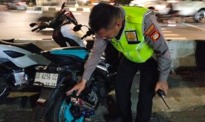 MAKASSAR — Sat Lantas Polrestabes Makassar menggelar razia kendaraan bermotor di jalan Pettarani Flay Over, Selasa malam (14/5/2024). Dalam razia terjaring kurang lebih dari dua puluh kendaraan roda dua.