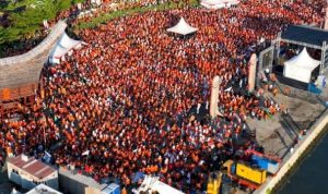 MAKASSAR — Peserta Senam Ininnawa Baik untuk Semua yang digagas tim pemenangan Bakal Calon Wali Kota Makassar, Indira Yusuf Ismail melampaui target dari yang diperkirakan. Peserta tumpah ruah meluber jauh.