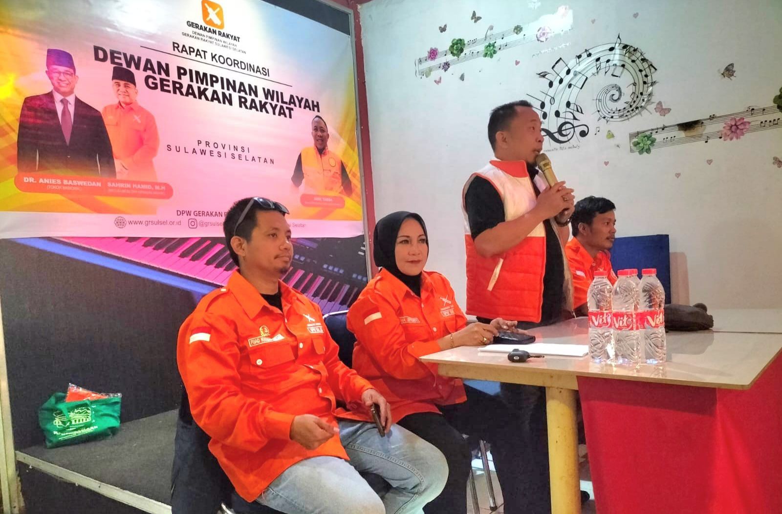 Rakor diawali dengan menyanyikan lagu kebangsaan Indonesia Raya dan mars Gerakan Rakyat. Suasana kebersamaan tampak kental dengan kehadiran puluhan pengurus, Dewan Pakar, dan Dewan Penasehat DPW GR Sulsel. Rapat berlangsung hingga menjelang magrib.